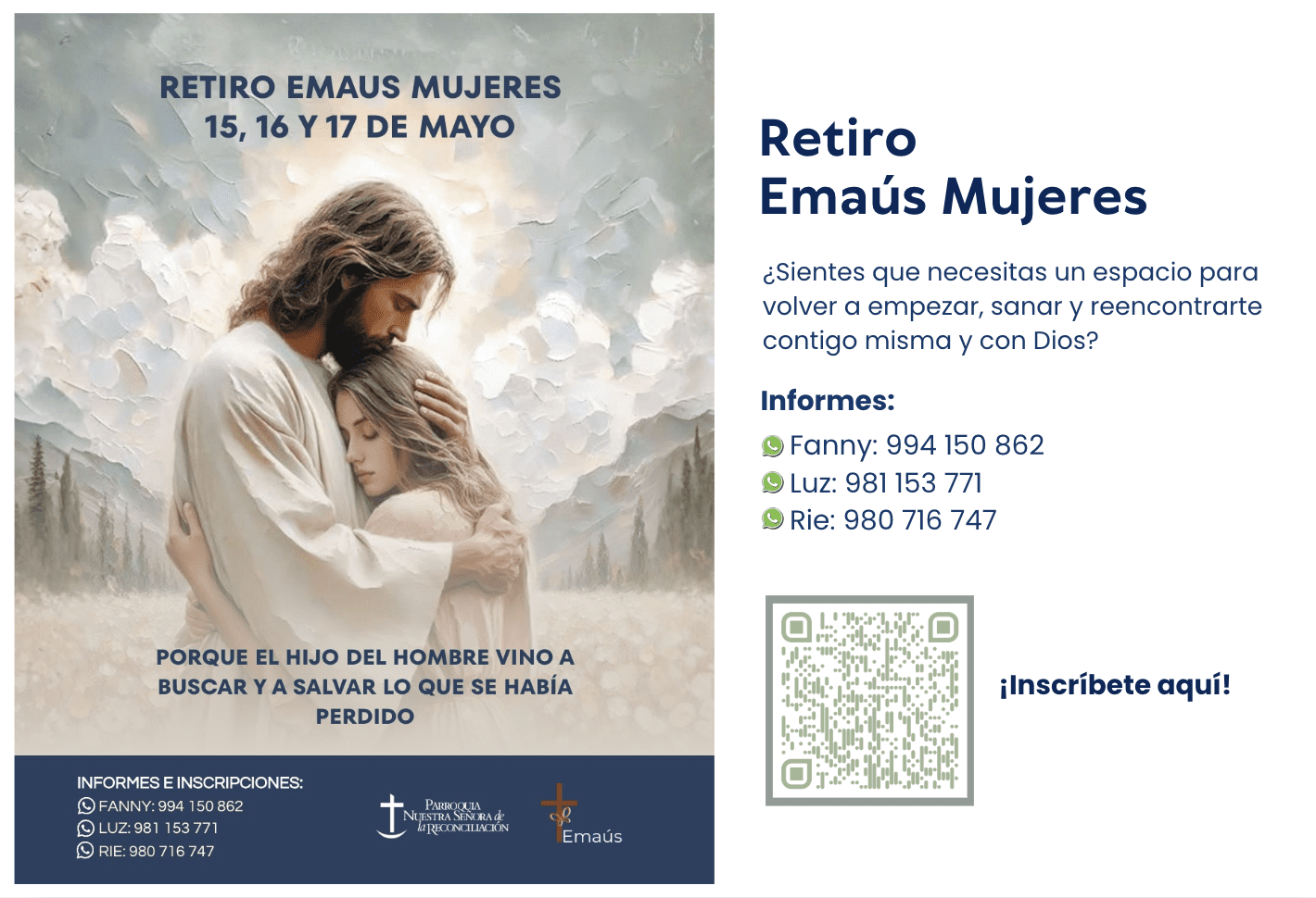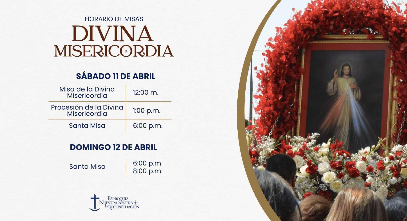 Somos una comunidad de fe que camina unidos bajo la guía amorosa de Nuestra Señora de la Reconciliación, buscando ser un reflejo del amor y la misericordia de Dios en el mundo. Como parroquia, nos comprometemos a ser un lugar de encuentro, reconciliación y de renovación espiritual, donde cada persona, sin importar su historia, pueda experimentar la reconciliación y el consuelo divino.